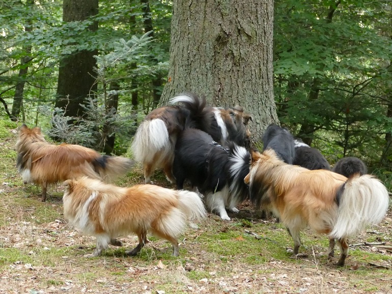 Wandern mit Sheltie – Am 15. September 2018 trafen sich Sheltiefreunde um gemeinsam Wandern zu gehen und einen schönen Mittag im herbstlichen Wald bei Sippersfeld zu verbringen. 13 Sheltiefreunde mit ihren Hunden waren der Einladung gefolgt. Treffpunkt war der große Parkplatz am Sippersfelder Weiher. Von dort aus ging es auf einem angenehm zu laufenden Rundrundweg um den Weiher zur Retzberghütte. Bei gutem Essen, erfrischenden Getränken und vielen informativen Gesprächen, natürlich über unsere Shelties, ließen wir dort den Tag ausklingen. Danke für die gute Organisation. Wir kommen gerne wieder.